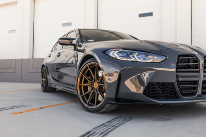 The RFX Series wheels are constructed with Cross Forged technology. Cross Forged wheels are a type of high-performance wheel that are created using a unique manufacturing process. This process involves taking a cast wheel and heating it to a high temperature, then using a machine to press the heated wheel between three rollers that are perpendicular to each other (thus the name “cross-forged”).