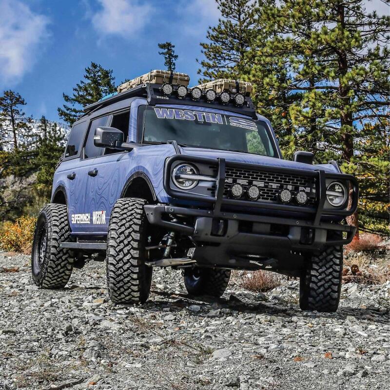 The XTS Brush Guard from Westin is an attractive, front end upgrade for your OE steel Modular Performance front bumper. It features 2in. diameter tubing for maximum durability and constructed of 10-gauge steel uprights for strength and style. The XTS Brush Guard provides a variety of optional light mounting center bars, completing your vehicle's upgrade with round or square LED light kit with Westin auxiliary lights (sold separately). The XTS Brush Guard has a durable textured black powder coat finish with an e-coated base coat, providing long lasting corrosion protection from the elements, and is backed by a 3-year warranty. Includes all necessary mounting hardware for a hassle-free installation. The XTS Brush Guard is the perfect choice for Ford Bronco owners.